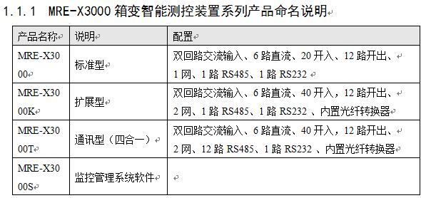 MRE-X3000箱式變電站智能監(jiān)控系統(tǒng)是安徽曼瑞特電氣有限公司著眼于智能箱式變電站的最新發(fā)展趨勢(shì),廣泛吸取了國內(nèi)外現(xiàn)有的技術(shù)和經(jīng)驗(yàn),自主研發(fā)的新一代產(chǎn)品。為國內(nèi)外用戶的35kV及以下電壓等級(jí)的箱式變電站、光伏電場(chǎng)箱式變電站、風(fēng)電場(chǎng)箱式升壓變電站等提供可靠、易用、實(shí)用、功能完善的自動(dòng)化、智能化方案。 箱式變電站智能監(jiān)控系統(tǒng)構(gòu)成方案MRE-X3000系列智能箱變測(cè)控裝置可以安裝于箱式變電站單獨(dú)完成監(jiān)測(cè)和保護(hù)功能,也可與MRE-X3000S箱變監(jiān)控管理系統(tǒng)軟件構(gòu)成智能箱變監(jiān)測(cè)系統(tǒng)。主要有三種典型結(jié)構(gòu):總線型網(wǎng)絡(luò)、以太網(wǎng)、光纖環(huán)網(wǎng)。
