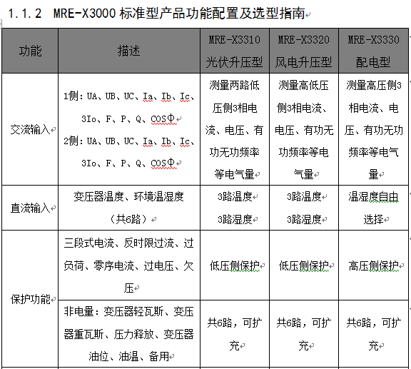 產(chǎn)品功能配置1.1.3主要技術(shù)指標(biāo)